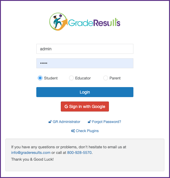 Step 1: Go to https://lms.graderesults.com/login