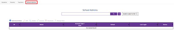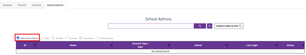 - Use the search filter to find the school admin