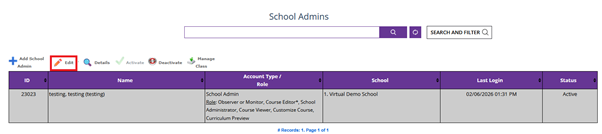 4. To edit or modify a current school admin: