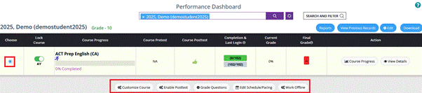 - On the courses listed, click on the radio button before the required course, and the customization features will appear below it