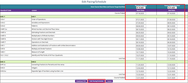 If you need to modify or remove any pacing, you can return to the same Pacing Guide page.